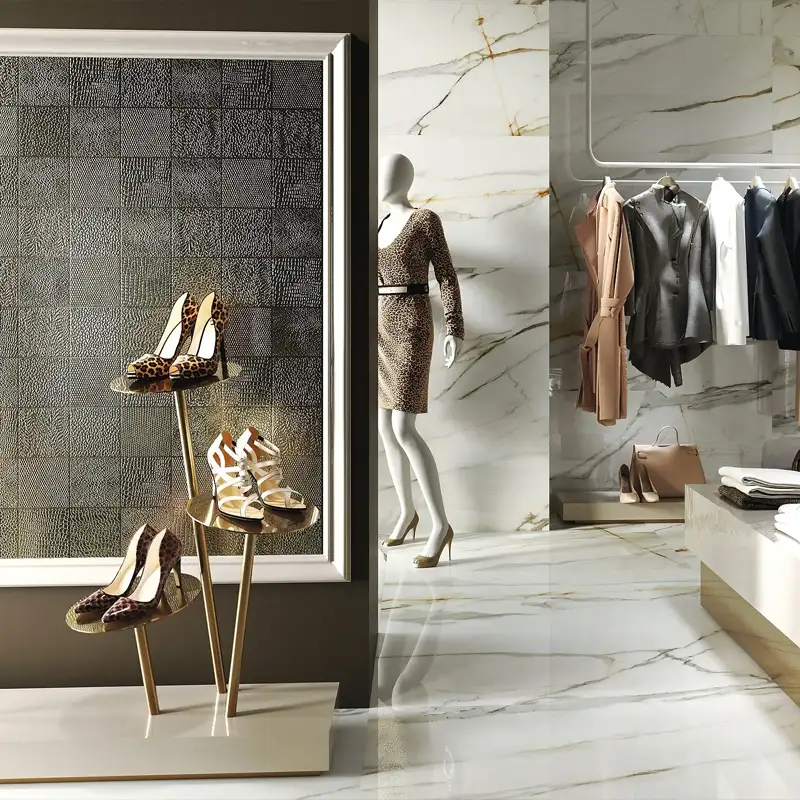 In stores, ceramic tiles can be used on both floors and walls. For example, a clothing store might choose tiles with textured finishes that mimic natural materials, creating a warm and attractive atmosphere.